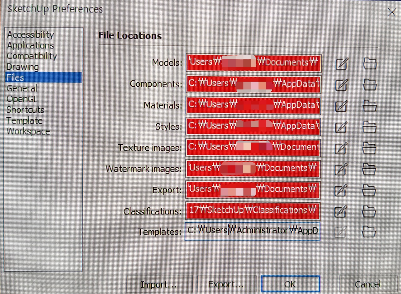 스케치업 환경설정에서 Files 경로를 변경해 주면 된다.